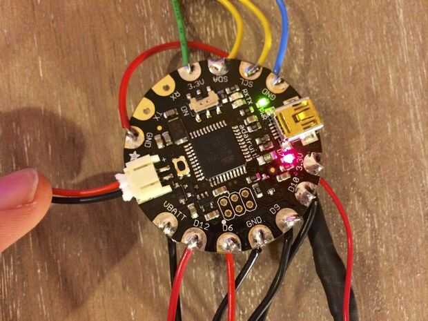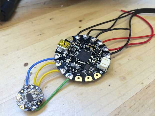 Una característica que había añadido fue que un conector de correo de los datos de los pernos que los LEDs podrían ser desenchufados y enchufados a la FLORA en lugar de ser soldadas directamente a la FLORA. En el super útil más adelante cuando el futuro paso del piso podría ser pronto en la mochila a lo largo de los interruptores para señalización de izquierda y derecha. Pero todavía puede desconectar al menos.