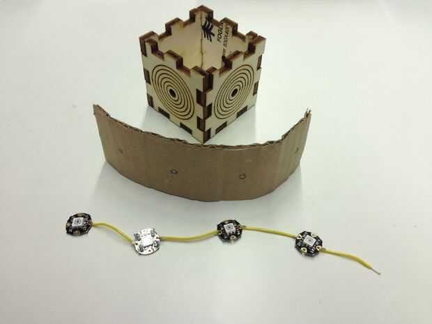 -tomar un pedazo de cartón y corte una línea amplia lo mismo que uno de la caja enfrenta para tomar las medidas pertinentes para la distancia de 4 leds;