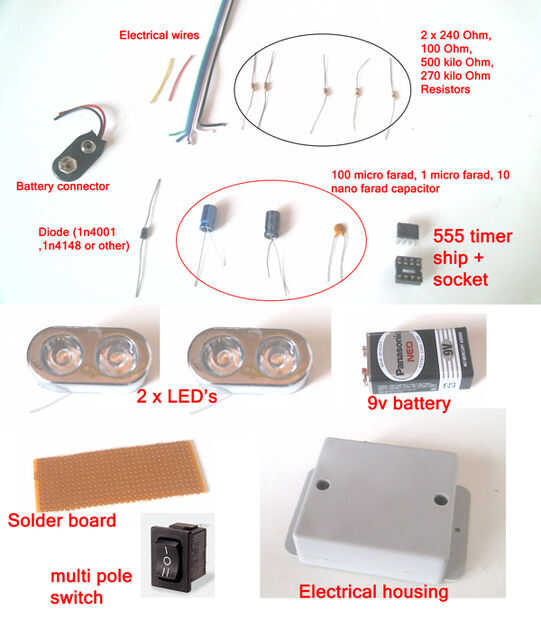 2 x LED (utiliza trabajo de coche del LED en 12v que encontré en una tienda de piezas de coche por menos de 5 dólares)