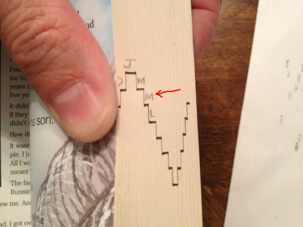 Algunos de los grupos no será lo suficientemente gruesos como para escribir la letra entera encima de la línea horizontal, pero que está bien, simplemente mueva la letra a más por lo que se pega hacia fuera como yo lo hice en la foto se muestra para el M para la marca. Esto será más importante cuando llegues a la última mitad del nuevo testamento.