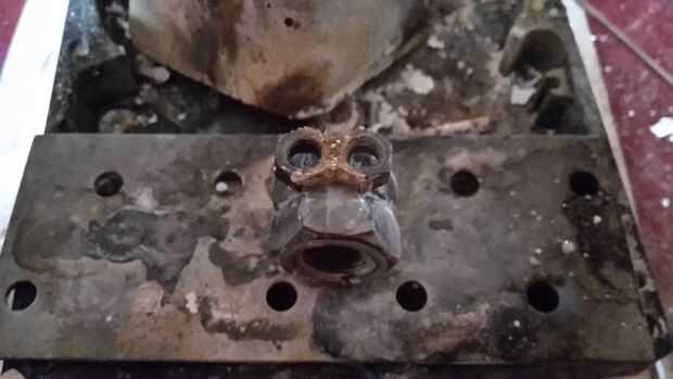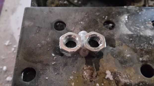 Coloque las dos tuercas M5 en las tuercas m10. No te olvides de utilizar fundente.