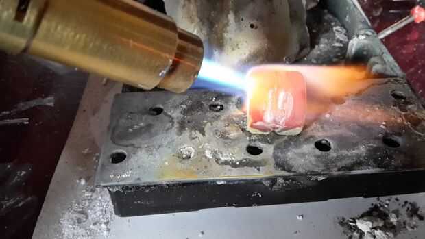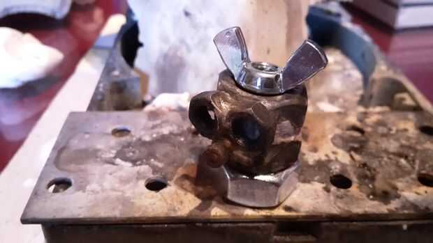 Coloque la tuerca de mariposa arriba de la cabeza. Esto toma un tiempo para obtener el metal a la temperatura adecuada.