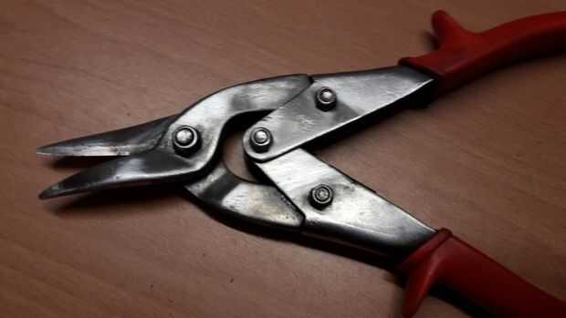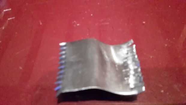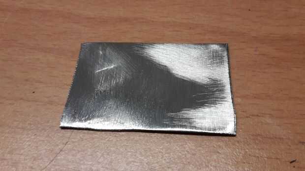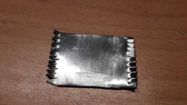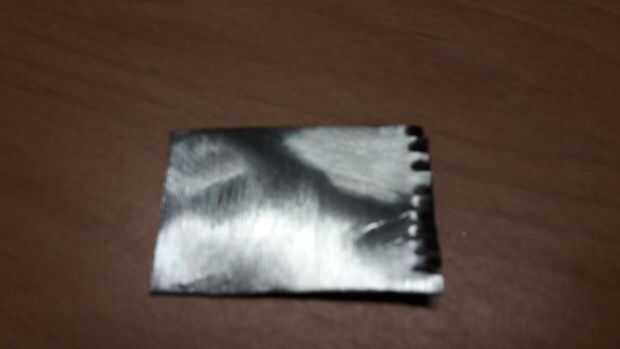 Con la tijera corte una pieza de metal (yo usé metal desde un panel de lado viejas de computadora)
