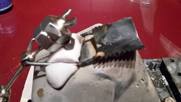 La alfombra de la soldadura demasiado los brazos. En la imagen ver una aplicación de la arcilla se utiliza para apoyar el objeto