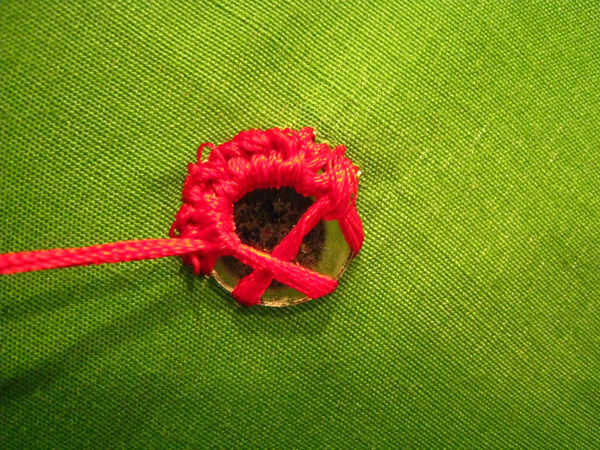 Cuando estes dando vueltas y haciendo que primero de dos puntadas y llegar a una zona donde dos de las líneas paralelas se cruzan, ir a través de ambos. Estas puntadas refuerzan la bodega.