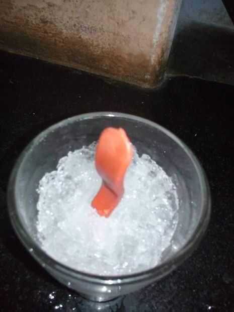 Triture bien de modo que él se convierte como un hielo en polvo esto absorbe todo el jugo dentro de ella