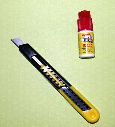 Vas a necesitar la pistola de pegamento caliente para conectar entre sí los trozos más grandes y el pegamento para pegar en los pedazos más pequeños. Recomiendo usar pegamento en las piezas más pequeñas porque se ve mucho más ordenado que el pegamento caliente. Pegamento caliente es útil cuando usted está conectando dos piezas que no encajan perfectamente ya que puede llenar las lagunas. El cuchillo es útil para cortar el exceso de pegamento caliente y para el ajuste de piezas para que se ajuste mejor a sus necesidades. Las toallas de papel son necesarios simplemente para limpiar pegamento extra para mantener limpia su área de trabajo.