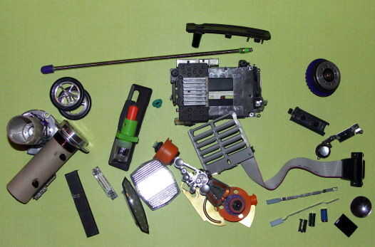 En primer lugar, exponer las piezas tienes que ayudar a sacar ideas. Piense en cómo desea que su robot que se formó. Decidí unir varias placas para hacer un cuerpo más o menos rectangular. Luego pegué en el reflector de la bicicleta para dar un pecho y algunas pequeñas cosas para parecerse a los actuadores para el robot. Básicamente, seguí agregando cosas hasta que pensé que se veía bien.