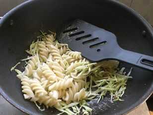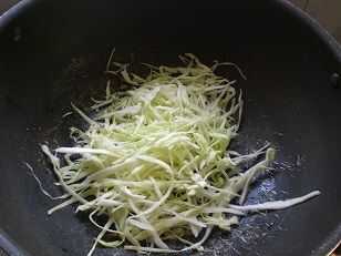 Tomar un wok o una batería de cocina antiadherente. Añadir unas gotas de aceite. Añadir el ajo, jengibre, verde los chiles, pimienta en polvo, sal a ella. Alevines hasta su medio. Luego agregar el repollo. Le dan un áspero fry. Luego añadir la pasta y freír por 5 minutos.