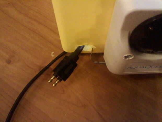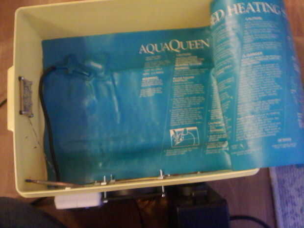 El acorde de la alimentación a través del agujero y colocar la almohadilla del calentador cuidadosamente en la parte inferior de la caja. Mina overhung acaba doblado sobre sí mismo y cabe bastante bien. Luego enchufa el acorde en el thermastat y tu listo para ir.