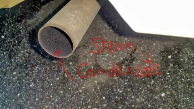 Como se muestra en las fotos, el vapor se condensa para formar una pequeña cantidad de agua en el tubo de escape. Carbón de la locomotora se ha depositado debido a la acción de limpieza del vapor. Mi pipa de la cola siempre es fresco al tacto gracias a este efecto.