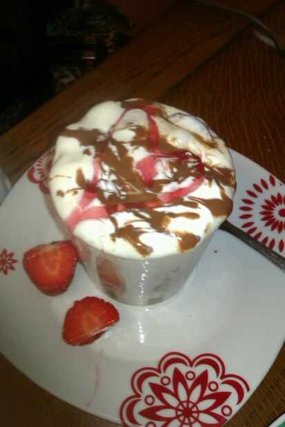 Ahora añadir los toques finales, corte de la fresa por la mitad y luego poner el jarabe en la forma de un corazón de amor < 3 Ahora, su empuje final en y disfruta: D