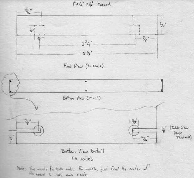 Probablemente, cambiaría algunas cosas de este dibujo. Los agujeros/cortes en el extremo de la Junta estaban demasiado cerca del final, tuve una rotura de pareja conmigo (aunque estaba bien pegado en). Probablemente 3/4" a 1" del extremo del tablero sería mejor.
