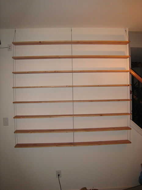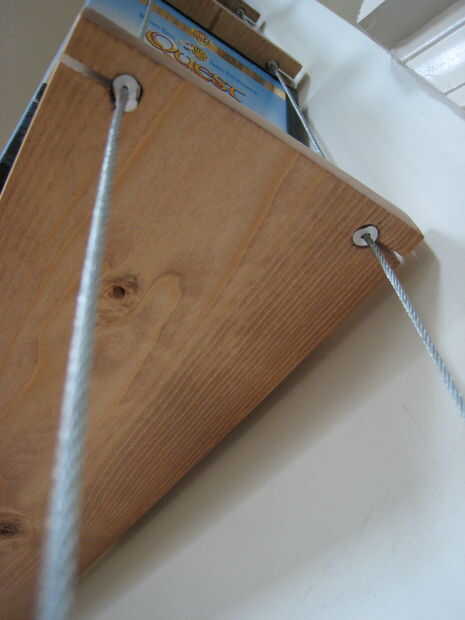 Cuelgue los 6 cables, detrás los van en los primeros entonces frente. A continuación, instale tablas sobre los tapones de deslizar el cable a través de la ranura y fijando el tope en los orificios de 3/8".