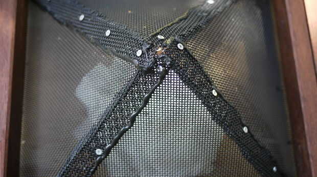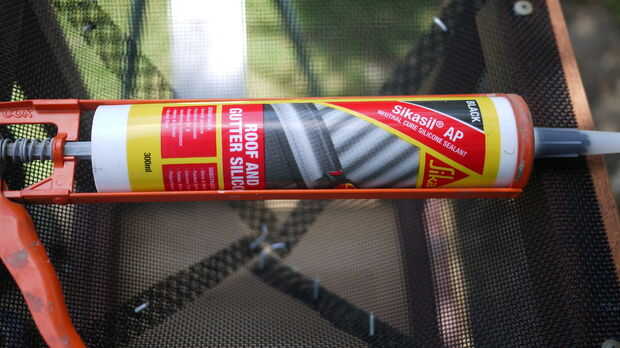 Después de todo es jodido temporalmente, su tiempo para correr un cordón de silicona por los bordes de las hojas a unirse a ellos y proteger sus manos de aristas desagradables. Puede utilizar un rociador con detergente para ayudar a suavizar la silicona apagado después de aplicar. Aplicar, trabajo, dedo de aerosol, propagación del aerosol. Limpie el exceso de dedos con un trapo o toalla de papel. Usted quiere asegurarse de que todos los bordes están cubiertos. Deje los tornillos calibre cuatro en hasta que la silicona se haya secado.