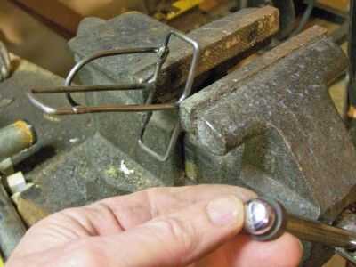 a menos que seas muy, muy bueno; la funda puede ser un poco demasiado flojo o demasiado apretado un poco para tu pieza de la electrónica. Resolví ese problema apretando un poco la zona suelta en un tornillo de banco. Ver la primera foto. Si la funda es un poco demasiado apretada o apreté demasiado, abrí la funda un poco apalancando con un martillo y un destornillador grande. Ver la segunda foto. El remitente de micrófono inalámbrico no tiene ninguna pantalla para proteger, así que no preocupa de ninguna marca de desgaste. Si es una consideración, los cables de acero del trozo podrían envolver con cinta aislante para proteger tus aparatos electrónicos.