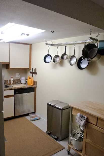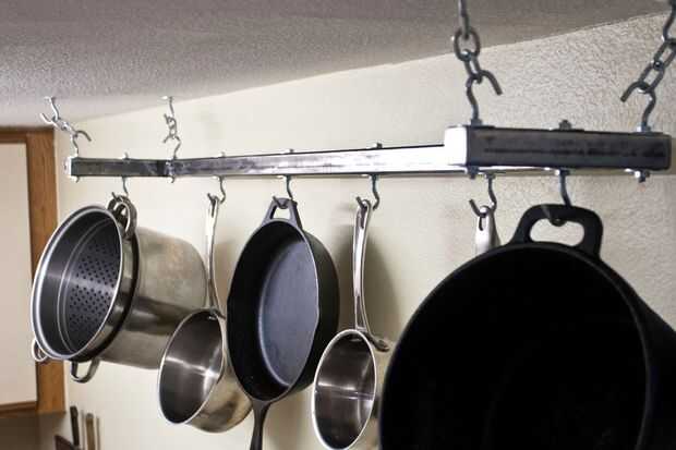 Después de embarcarse en un objetivo personal para aprender a cocinar mejor, empecé a quedar sin espacio en mi cocina con todos los nuevos utensilios y sartenes. Pensé que podía cuelgo mis sartenes para ganar mucho espacio rápidamente, así que decidí construir un industrial moderno, estante colgante del pan. Tuve algunos remanente acero tendido alrededor en mi garaje, así que pensé ¿Qué mejor manera de utilizarlo? He comprado algunos hardware de Home Depot para cerca de $25 y viola, un rack de pan barato, bastante guapo!