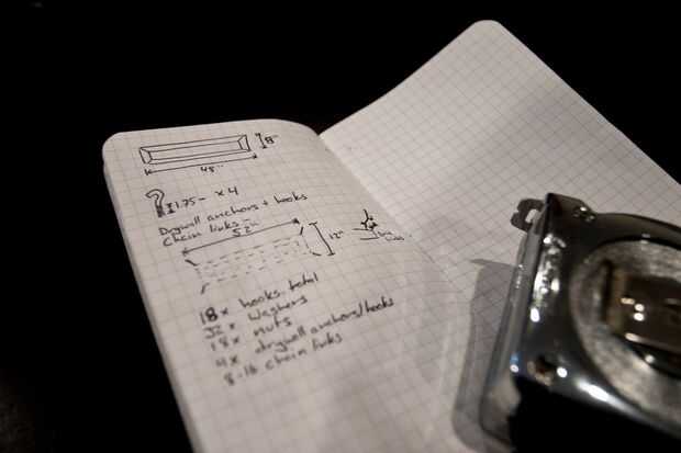 Decidí hacerlo un simple bastidor rectangular. Es 48" de ancho y 8" de profundidad, con uno de los laterales faltantes, por lo que parece una "U" aplastada. Se necesita: