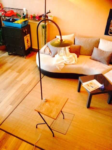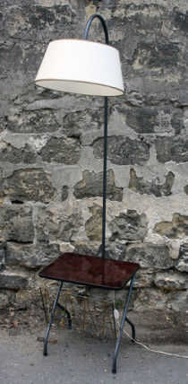 he encontrado una vieja lámpara de lectura con un sostenedor del compartimiento debajo de él.
