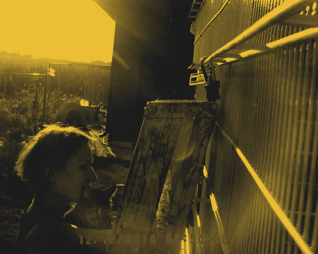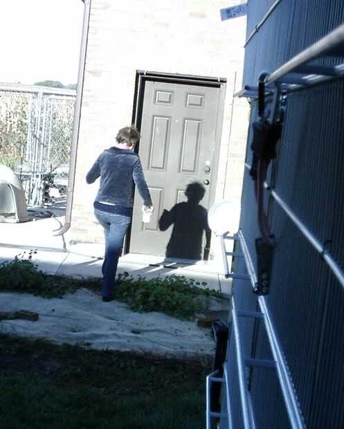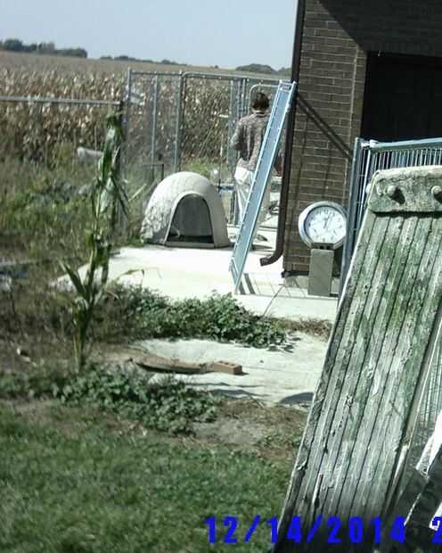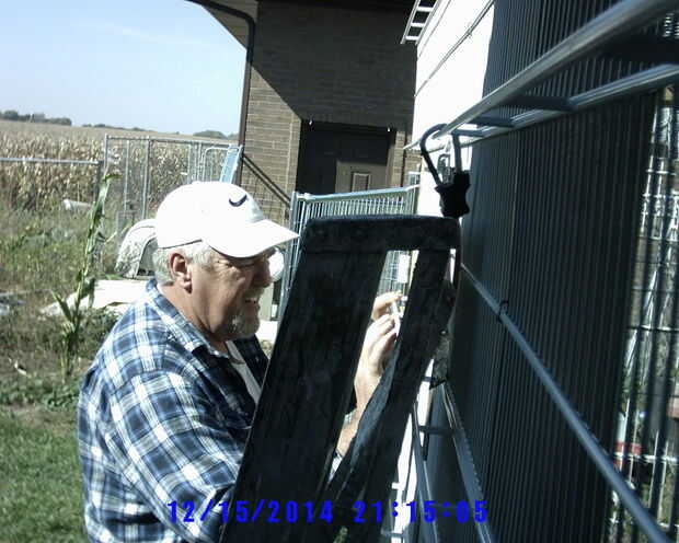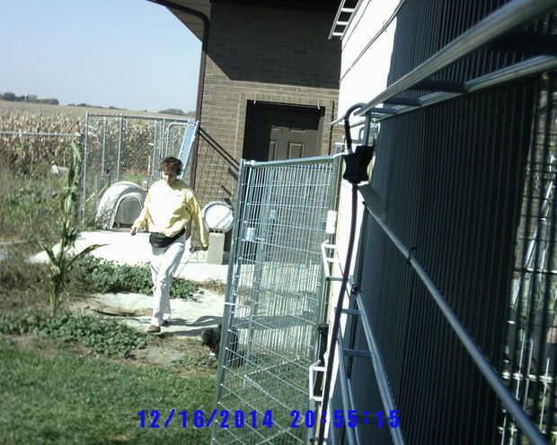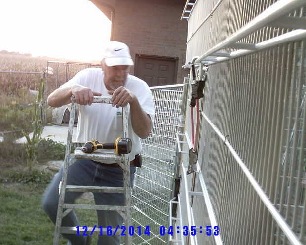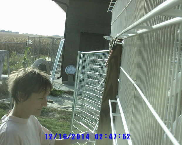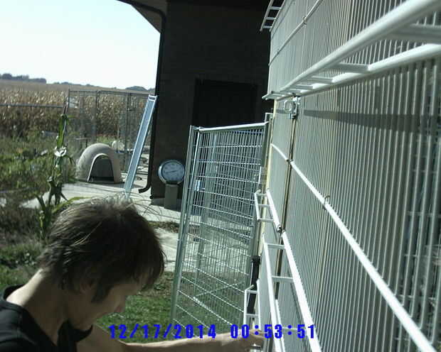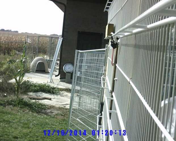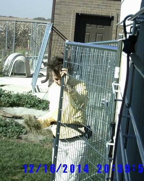 Ineludible perro, gato, humanos a pie de edificio, (paneles de la perrera) cubierto y al abrigo de los elementos de conexión (2 / 3 paso)