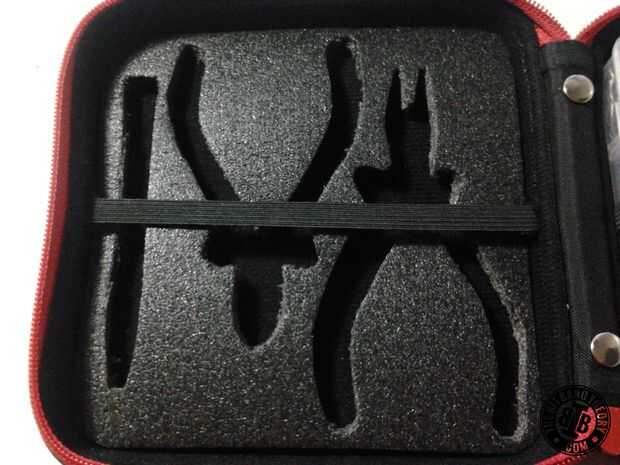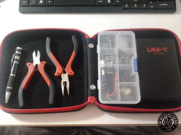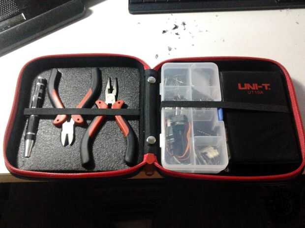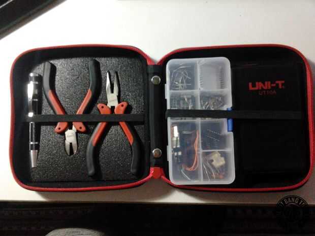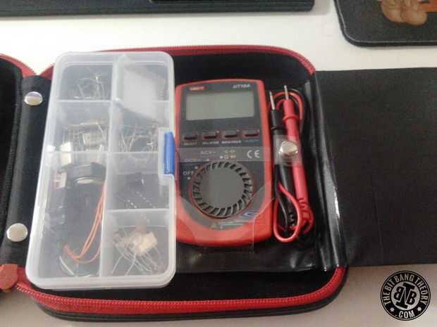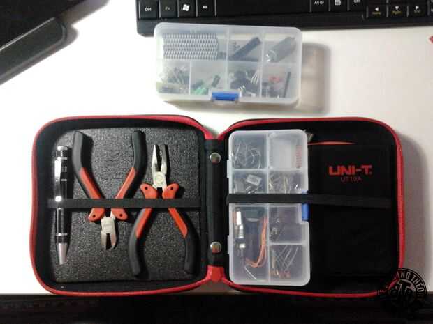 Después de hacer el kit de herramientas verifica que es posible montar en algunas herramientas más. He añadido un cuchillo, que se aprecia en las fotos, el kit colocando debajo el multímetro digital.