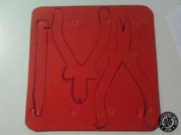 -Utilizando papel o algún otro material hace un bosquejo de cómo desea colocar las herramientas en una forma que encaja dentro de la bolsa y corta con el cuchillo;