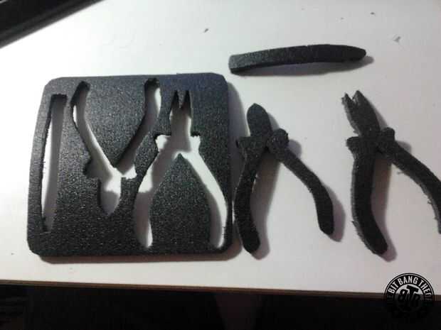 -Cortar una parte de la alfombra de fitness y utilizando el dibujo como un molde las formas de las herramientas de corte con el cuchillo;