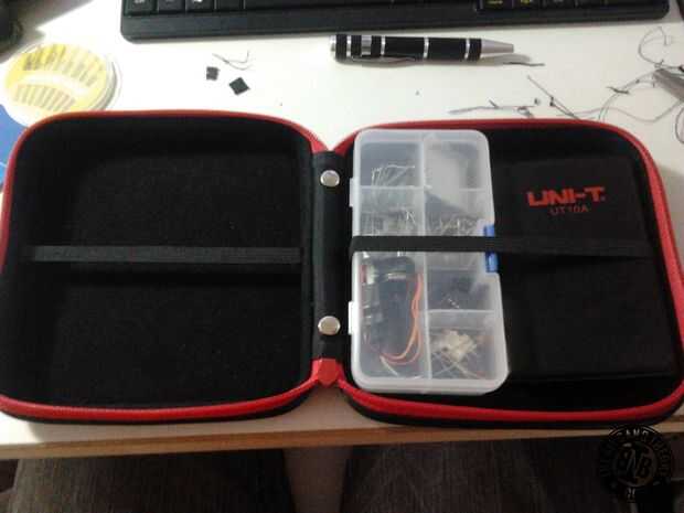 La caja de plástico tiene el propósito de almacenar algunos componentes electrónicos o juntas de desarrollo aún muy pequeña desde los espaciadores dentro pueden eliminarse para obtener particiones más grandes. Si eres un estudiante usted puede encontrar útil tener varias cajas, tal vez uno para cada conferencia, y sólo tienes que cambiar la caja cuando vas a una conferencia diferente. También existe la opción de colocar dos cajas dentro en lugar de una caja y un multímetro.