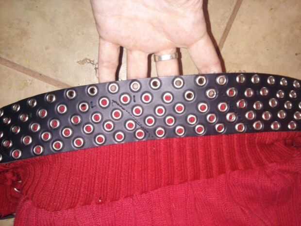 El desafío a que me di era hacer un barato roja disfraz campana totalmente de ropa origen/encontrado.