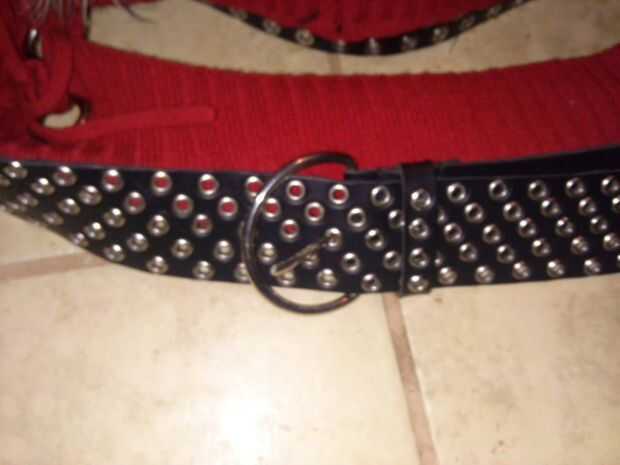 Todas las prendas fueron compradas en la tienda de PTA en el Condado de Chatham. Lista de la compra: Dos suéteres, cinturón y chaqueta. Costo total: $7, suéteres fueron cada uno a la venta por $1, regularmente $2; correa fue 1; chaqueta fue de $4.