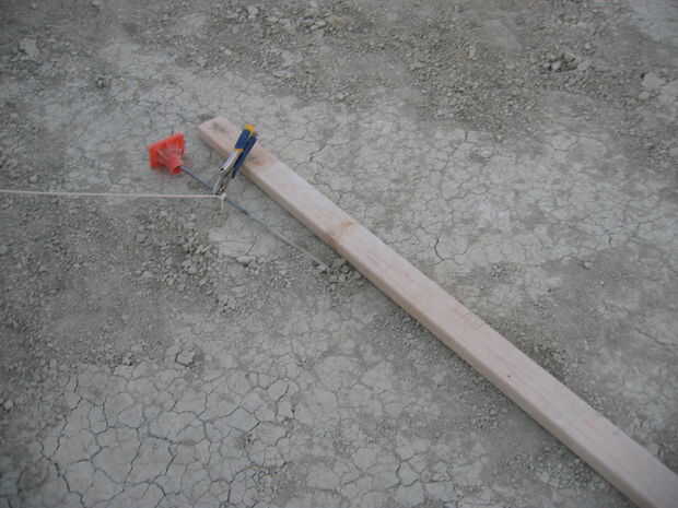 Carpa común estacas diapositiva fuera de la cama seca del lago o playa, que gente acampa en Burning Man. La solución de tiempo honrado es rebar. Es barato, fácil de cortar a la medida y no demasiado difícil de martillo en la playa después de un poco de práctica.