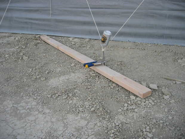Pone el 2-por-4 al lado de la varilla, un tercio de la manera encima de su longitud.