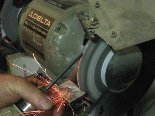 Para terminar sharpeneing el poco, muy, muy ligera presión.  Sólo debe ver chispas mínimo.  Esto es tomar el alto punto de la broca y convirtiéndose en un filo.