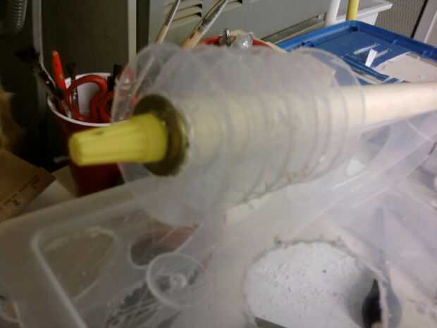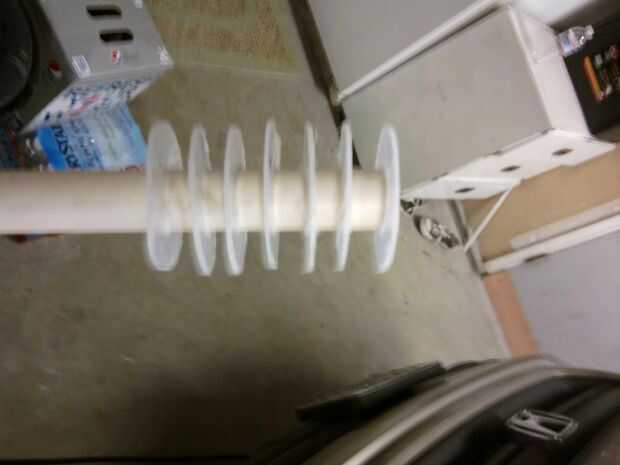 tomar 7 de los discos y extender uniformemente en toda la primera 3" de la 1/2" pvc