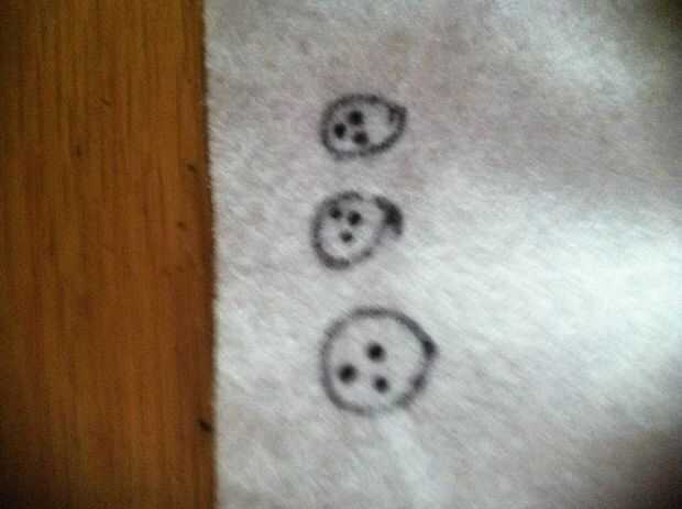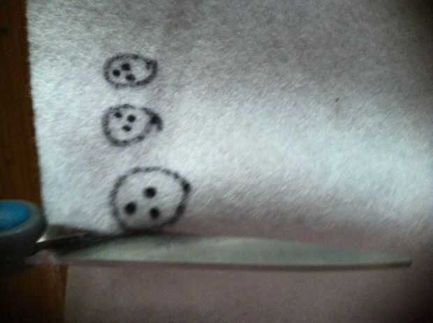 Estos chicos son realmente fáciles de hacer. Simplemente dibuja 3 círculos sobre un trozo de fieltro blanco y tres puntos en cada uno. Taa Daa!!
