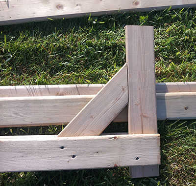Os adjunto una vertical en cada extremo con un par de tornillos a cada lado del travesaño. Luego lo sujeta con una pieza angular que también estaba en su lugar a cada lado.