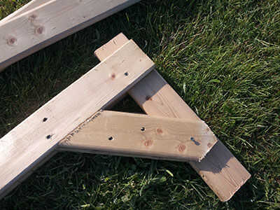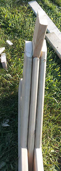 La primera foto muestra cómo la madera fue cortada. El segundo muestra al travesaño montado con posición vertical en una posición de pie.