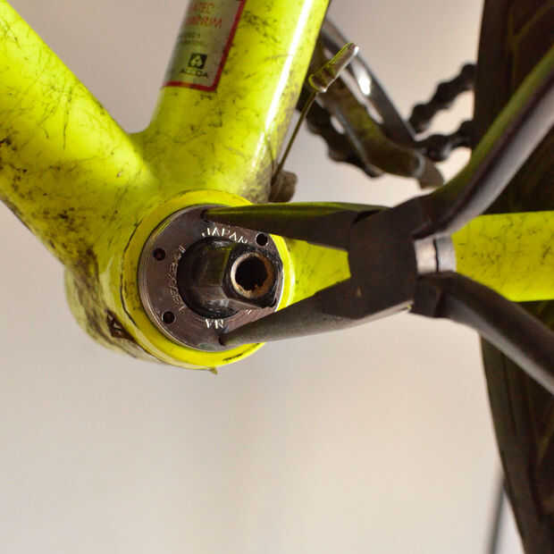 Generalmente tiene un montón de agujeros en ella. Usted puede obtener una herramienta especial para ir en estos agujeros (aquí o aquí por ejemplo). Pero usted puede conseguir generalmente lejos con el uso de un largo par de alicates. Sólo gire en sentido antihorario (Heydon zurdo). Por lo general, esto es muy fácil: todo el apriete duro se realiza por el anillo.