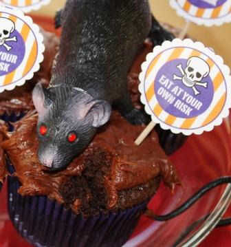 Quicky helada cupcakes y añadir sprinkles si lo desea. Con un tenedor, escoger una pieza de la parte superior y añadir una rata de juguete para que parezca está mordisqueando el cupcake.