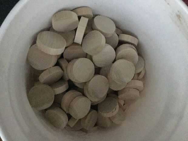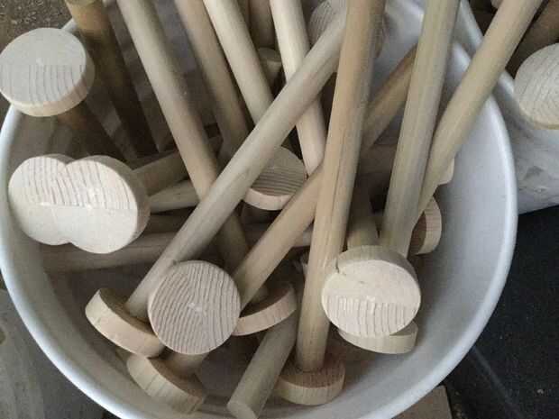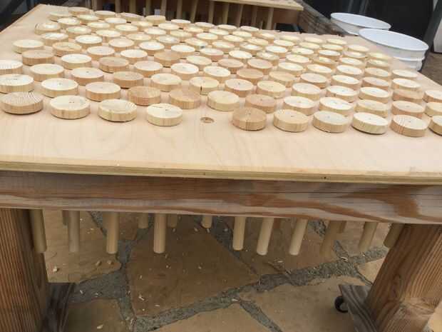 Lije las espigas parcialmente ensambladas (clavijas tienen un tapón en su lugar en esta etapa).