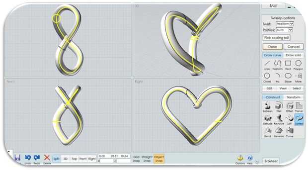 Establecer el círculo pequeño como el perfil y la curva del corazón infinito como el camino para crear un objeto.