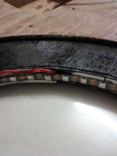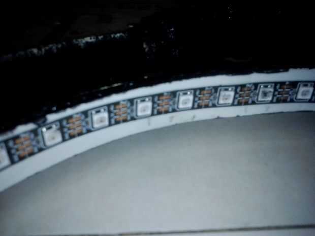 - Pegar la tira del LED para el interior de la abertura circular en el tablero del bloque. Asegurar que el primer LED en 12 o ' posición de