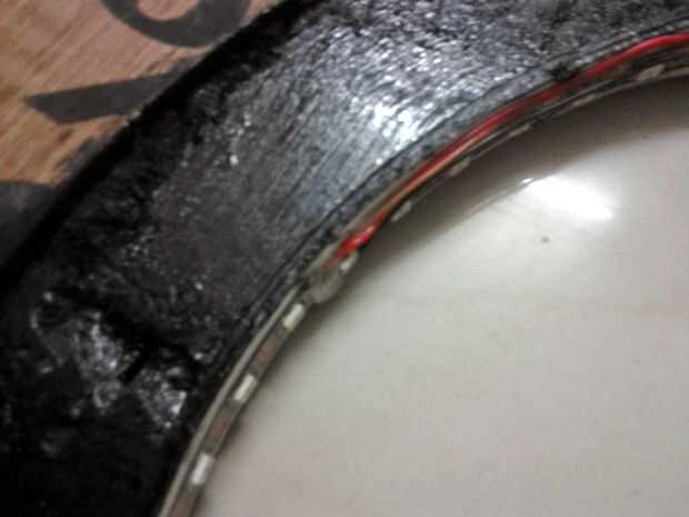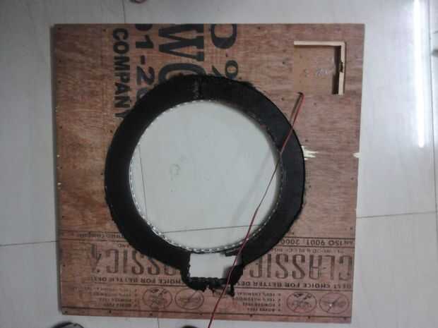 - Fijar el vinilo negro en la parte delantera - usted tendrá que cortar un círculo en el centro (~ 380 mm diámetro) para que la unión entre el vidrio y la madera obtiene ocultos.