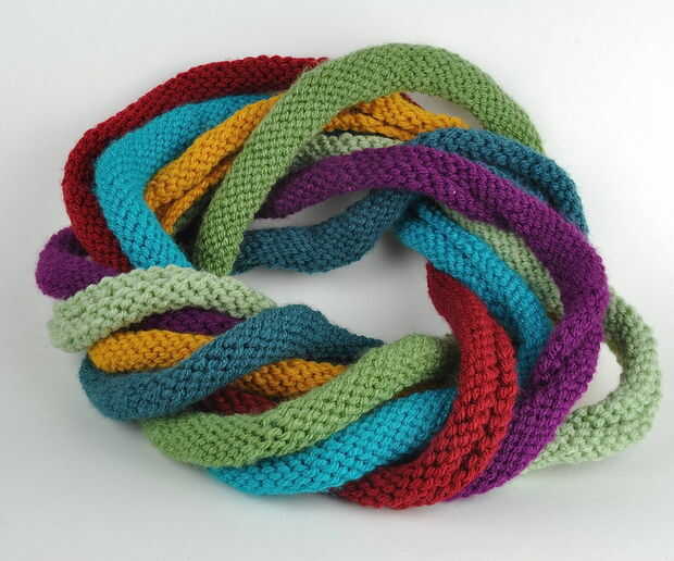Hace unos años hice una bufanda de 7 veces de infinito. Miembro mbenner comentó y dijo que sería un buen proyecto para un calcetero i-cord. Me gustó la idea y ahora finalmente he conseguido a intentarlo hacia fuera! Yo siempre pensé que otra bufanda