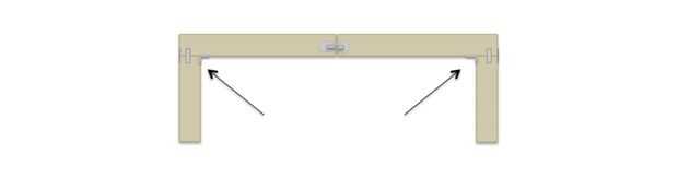 Coloque estas secciones en las esquinas de la mesa con los soportes. Estas secciones actuará como las patas de la mesa. Coloque los soportes de una recta en cada cara exterior de cada pierna y el tornillo en su lugar para que las piernas se unen al cuerpo de la tabla. Soporte de esquina de 1 lugar en la esquina entre las patas y la mesa, como indicado por las flechas de arriba y el tornillo en su lugar.