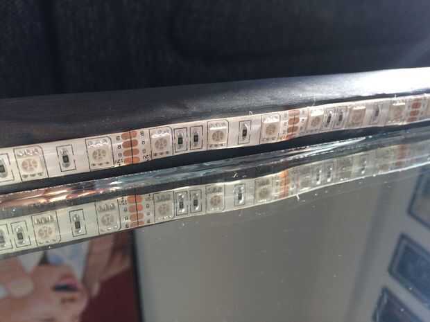 3. Pegar la tira del LED para el interior borde del marco. He intentado pegarla directamente como la tira adhesiva con el respaldo, pero salió después de algún tiempo. Así que tuvo que usar un pegamento fuerte (similar al pegamento del gorila o araldite)