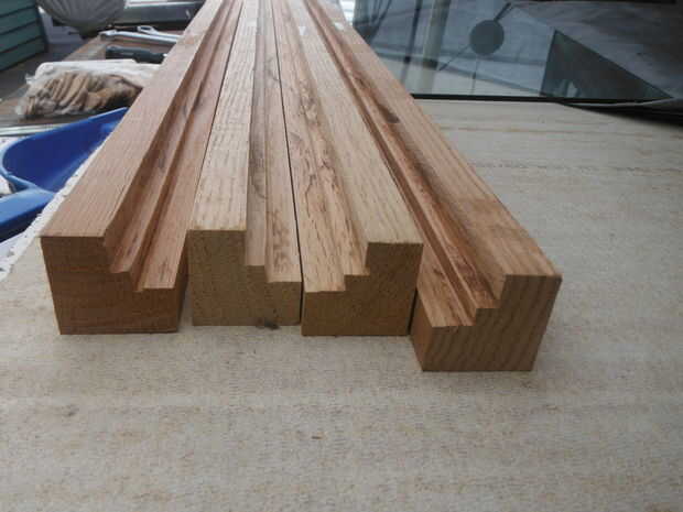 Comience cortando y haciendo muescas en la madera de construcción que necesita para la tabla. La base, tapa y recorte deben ser simple. Los cortes difíciles son el marco de las piernas. He utilizado algunos vidrio ¼inch templado, asi que necesitaba para cortar un canal para el vidrio en el asiento. Para mi prototipo, corte una ranura de 1/4 pulgada hacia abajo de dos caras de 2 x 2. En mi versión final que opté por cortar un patrón de tipo de escalera en las piernas, usando cuatro cortes con una mesa de sierra. El guarnecido superior necesita montaje agujeros taladrados en él para montar la tapa de debajo. Haciendo esto, tu mesa no tiene tornillos visibles.