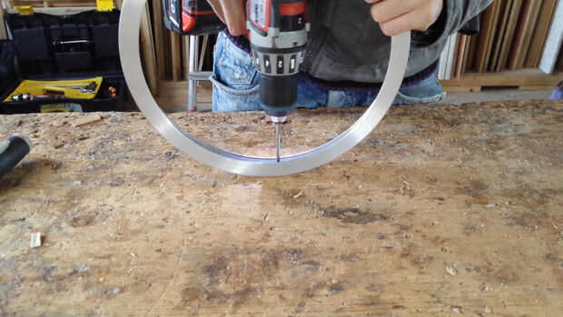 Desmontar el antiguo reloj, tome el borde y taladre un agujero de 8mm 1, 5cm de su borde. Necesitamos ese agujero para pasar los alambres de la tira led del adaptador a través de él.