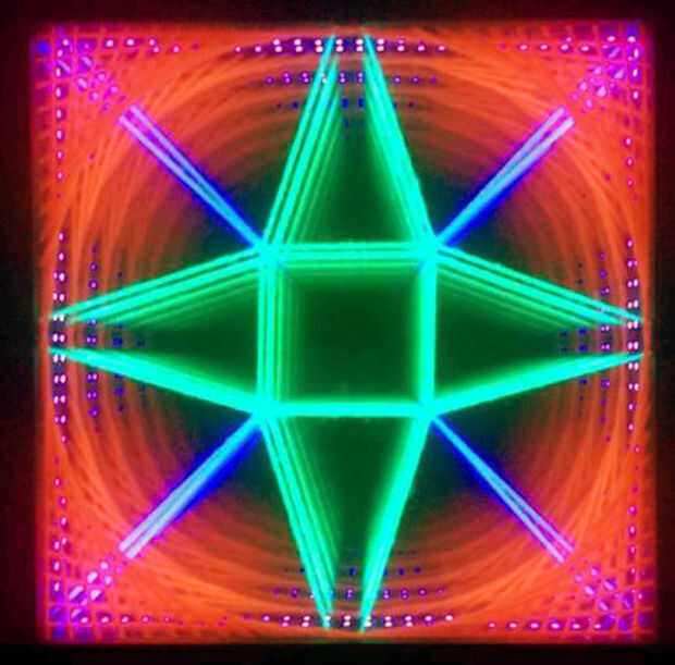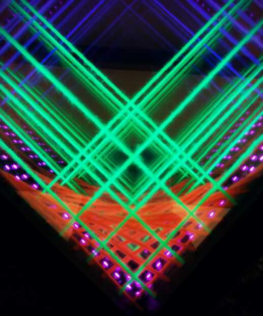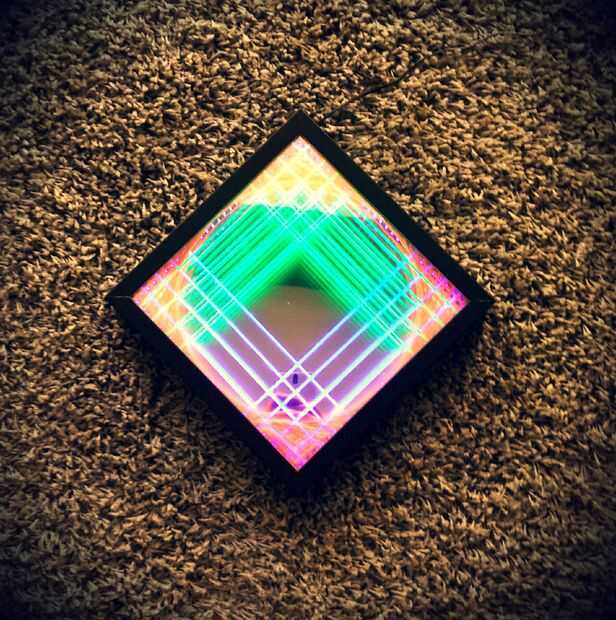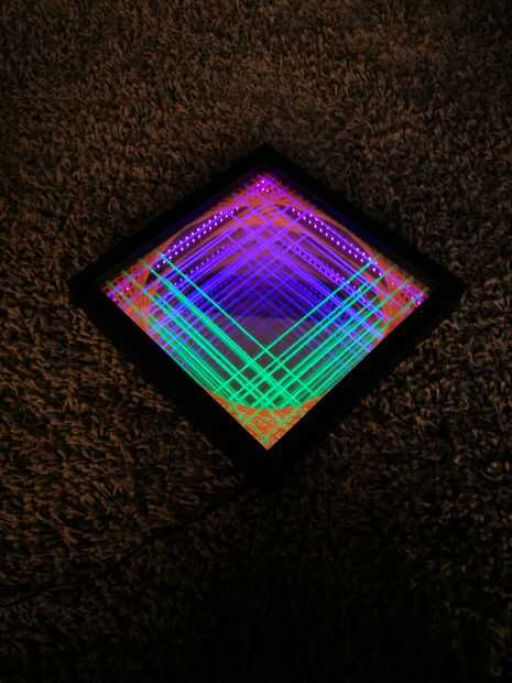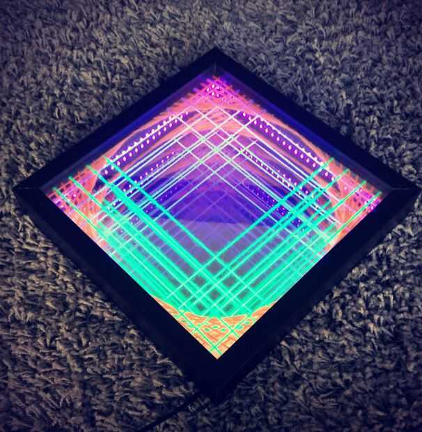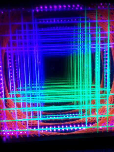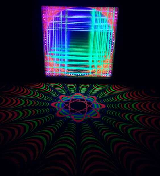 El arte de la cadena de Infinity es la Unión de un infinito espejo con LEDs de UV y el arte de la cadena.