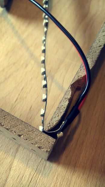 Usted puede ver que cuando puse la estructura de madera en el marco y cuando puso el espejo, el cable de alimentación es adecuado donde cometí el pequeño error en mi corte.